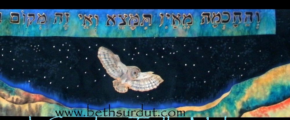 May Adonai keep watch between you and me, when we are absent one from another. I offered this as a suggestion to the mother who commmisioned this for one of her daughters because, she told me, "I would like her to feel that I am wrapping my arms around her when she wears her prayer shawl."