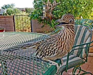 This wild #roadrunner walked up to me when I sang to him in October 2023 and has been visiting ever since. Companionable and curious, Roadie comes to my studio door and waits for me to sit outside with him, sometimes for hours. As of fall 2025, I am singing to Roadie on my patio in the Sky Islands.